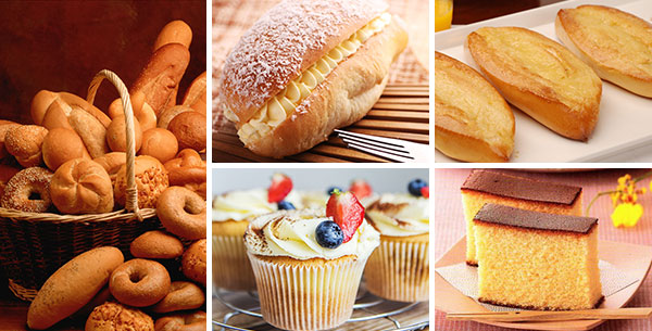 软面包:甜甜圈、菠萝包、毛毛虫、蔓越莓面包、提子吐司、岩烧乳酪面包、海鲜披萨等;