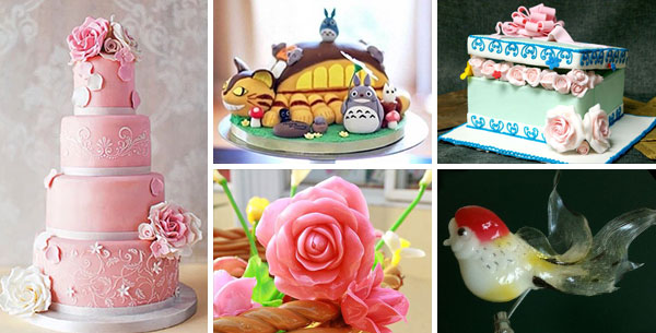糖艺造型:玫瑰花、菠萝、海豚、金鱼等。