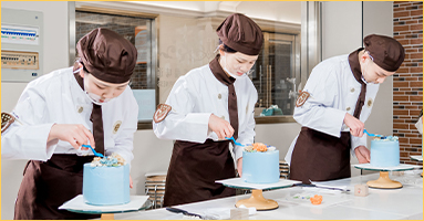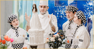 此阶段学员须掌握英式翻糖、韩式裱花、咖啡饮品、法式甜点、中式面点、市场流行制品、甜品台制作工艺;